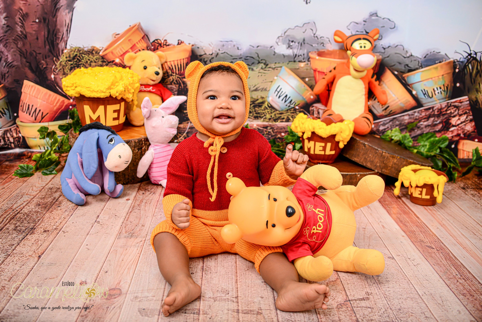 Esse é um ensaio com uma decoração mais luxuosa, ideal pra comemorar o aniversário do bebê. Indicado pra até 5 anos. Não inclui a bagunça com o bolinho.
